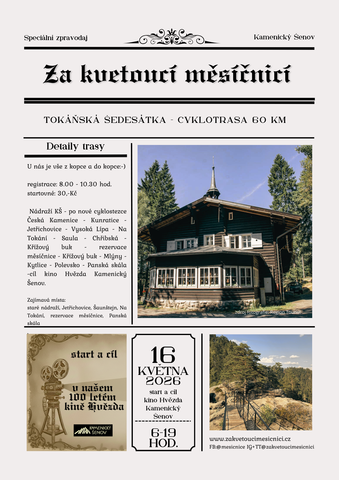 Start a cíl: kino Hvězda Kamenický Šenov.